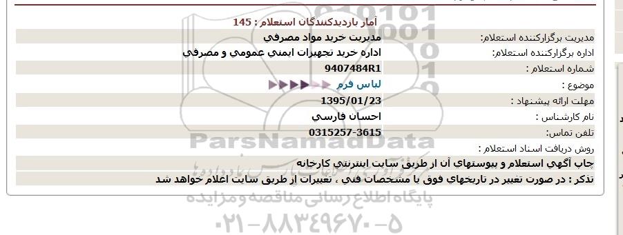 اداره برگزارکننده استعلام: اداره خرید تجهیزات ایمنی عمومی و مصرفی