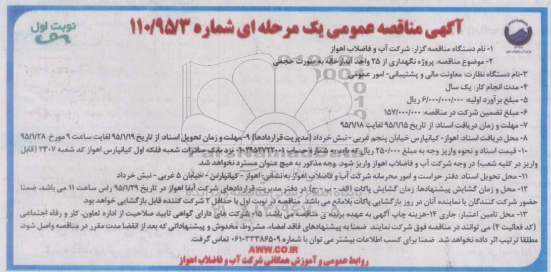 1- نام دستگاه مناقصه گزار : شرکت آب و فاضلاب اهواز