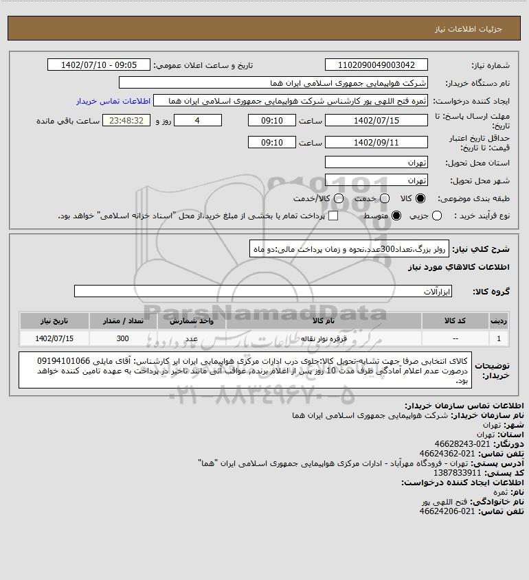نام دستگاه خریدار:شرکت هواپیمایی جمهوری اسلامی ایران هما
