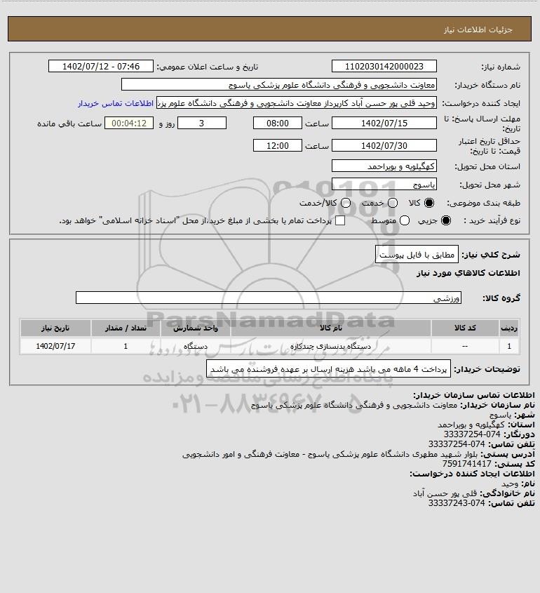نام دستگاه خریدار:معاونت دانشجویی و فرهنگی دانشگاه علوم پزشکی یاسوج