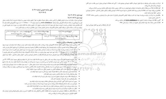 پاسخ: جهت کسب اطلاعات بیشتر در رابطه با این مزایده لطفا با مزایده گزار تماس حاصل نمایید.