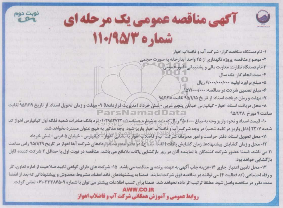 برای شرکت در مناقصه حتما از تصویر آگهی در سایت پارس نماد داده ها استفاده نمایید