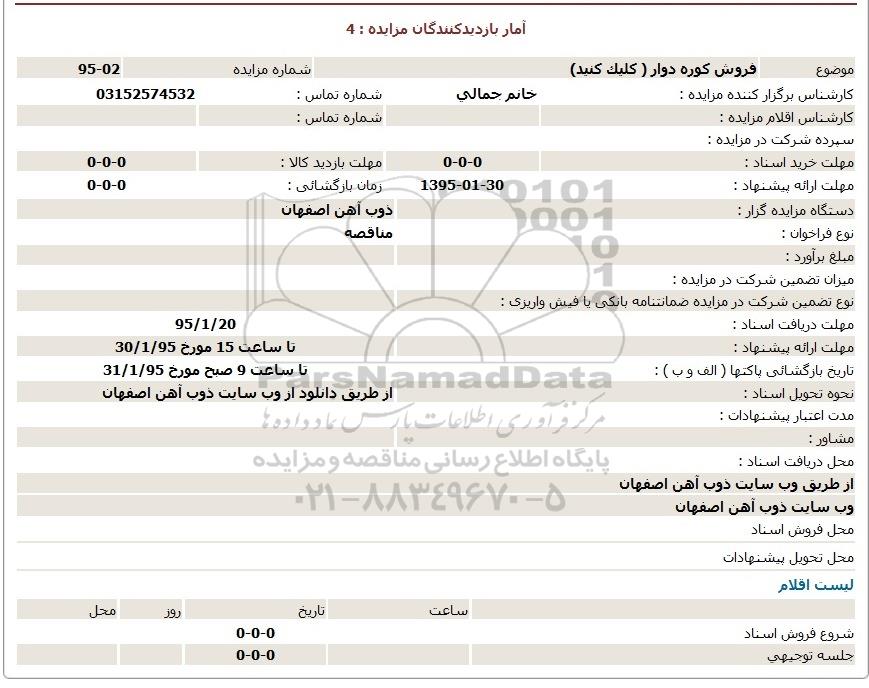 کارشناس برگزار کننده مزایده :خانم جمالی شماره تماس : 03152574532