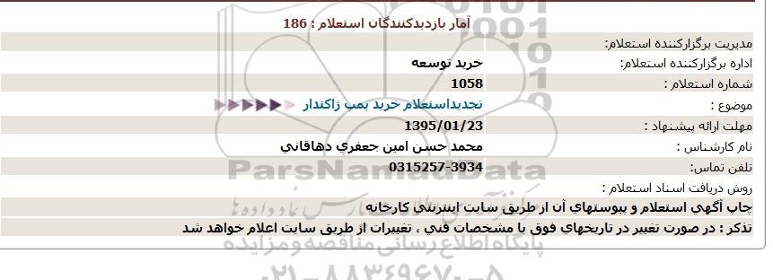 موضوع: تجدید استعلام خرید پمپ ژاکتدار