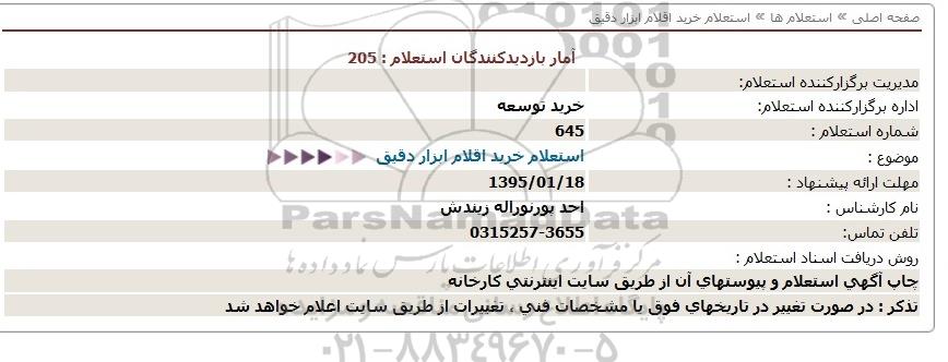 موضوع: استعلام خرید اقلام ابزار دقیق
