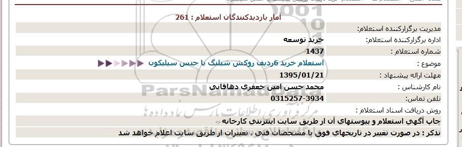 موضوع : استعلام خرید 6 ردیف روکش شیلنگ با جنس سیلیکون