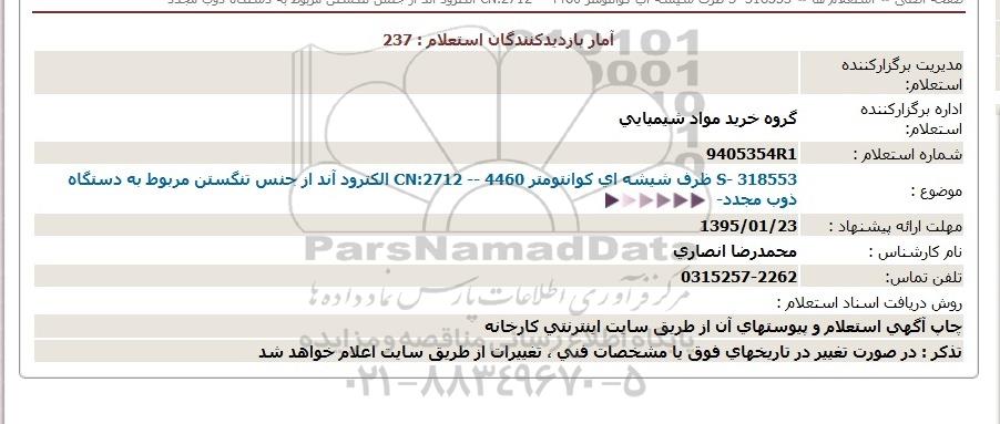 اداره برگزارکننده استعلام: گروه خرید مواد شیمیایی