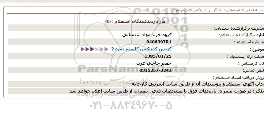 اداره برگزارکننده استعلام: گروه خرید مواد شیمیایی