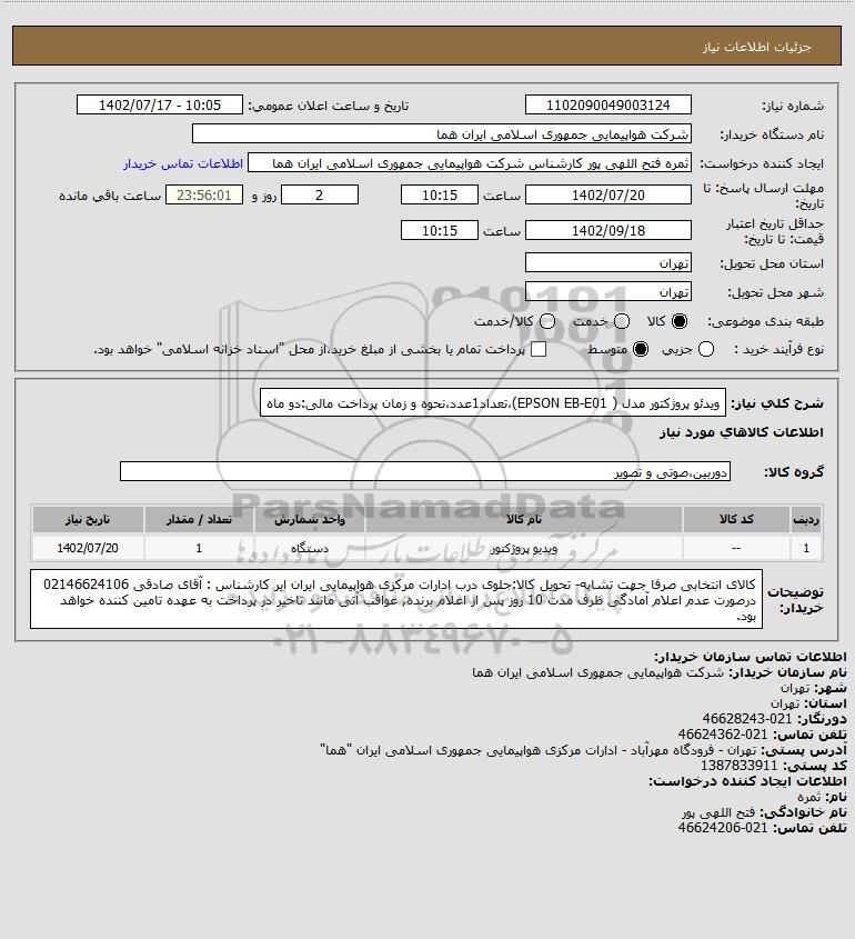 نام دستگاه خریدار:شرکت هواپیمایی جمهوری اسلامی ایران هما