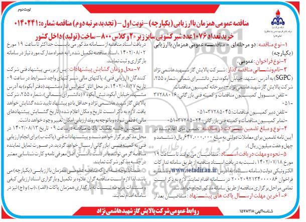 مناقصه عمومی همزمان با ارزیابی (یکپارچه) - تجدید مرتبه دوم - مناقصه شماره 0140241