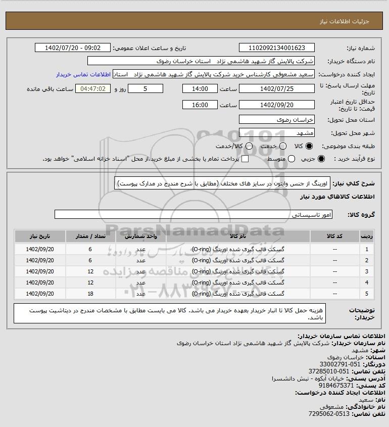 نام دستگاه خریدار:شرکت پالایش گاز شهید هاشمی نژاد استان خراسان رضوی