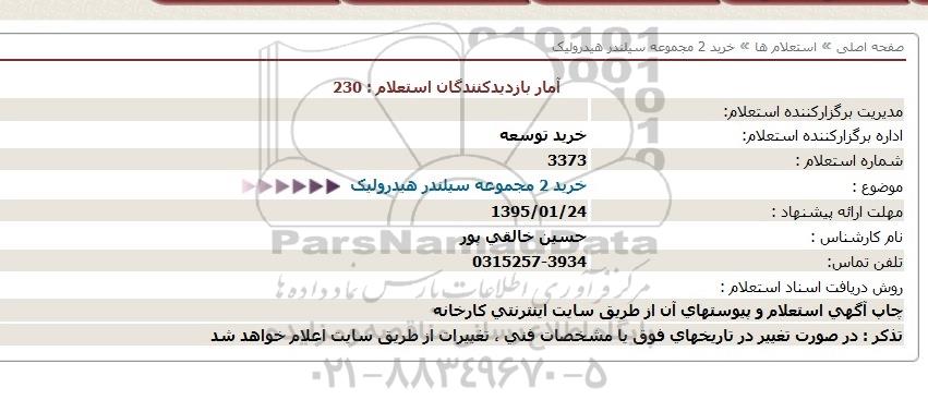 استعلام خرید 2 مجموعه سیلندر هیدرولیک, استعلام, استعلام خرید 2 مجموعه سیلندر هیدرولیک