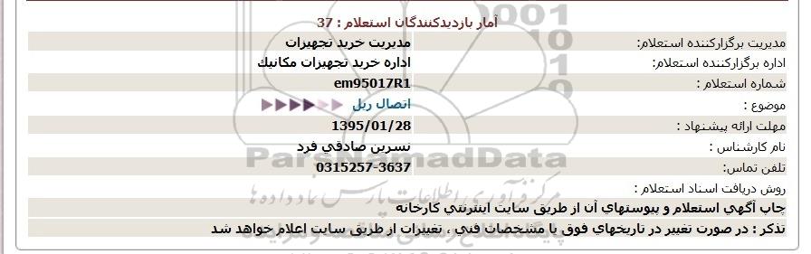 اداره برگزارکننده استعلام: اداره خرید تجهیزات مکانیک