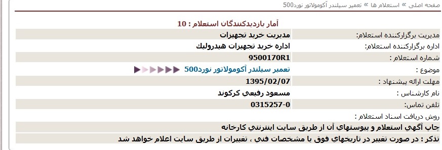 اداره برگزار کننده استعلام اداره خرید تجهیزات هیدرولیک