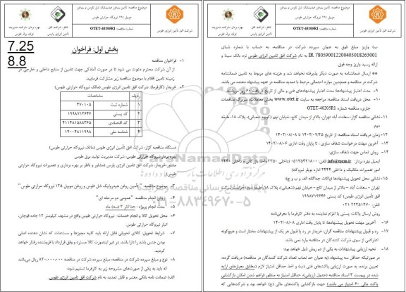 جهت رویت اطلاعات بیشتر اصل اگهی به قسمت تصویر اگهی در سایت مناقصات پارس نماد مراجعه فرمایید