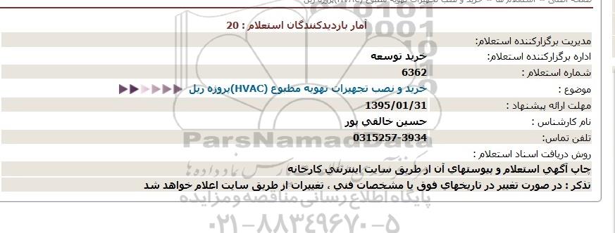 استعلام خرید و نصب تجهیزات تهویه مطبوع (HVAC) پروژه ریل , استعلام خرید و نصب تجهیزات تهویه مطبوع (HVAC) پروژه ریل