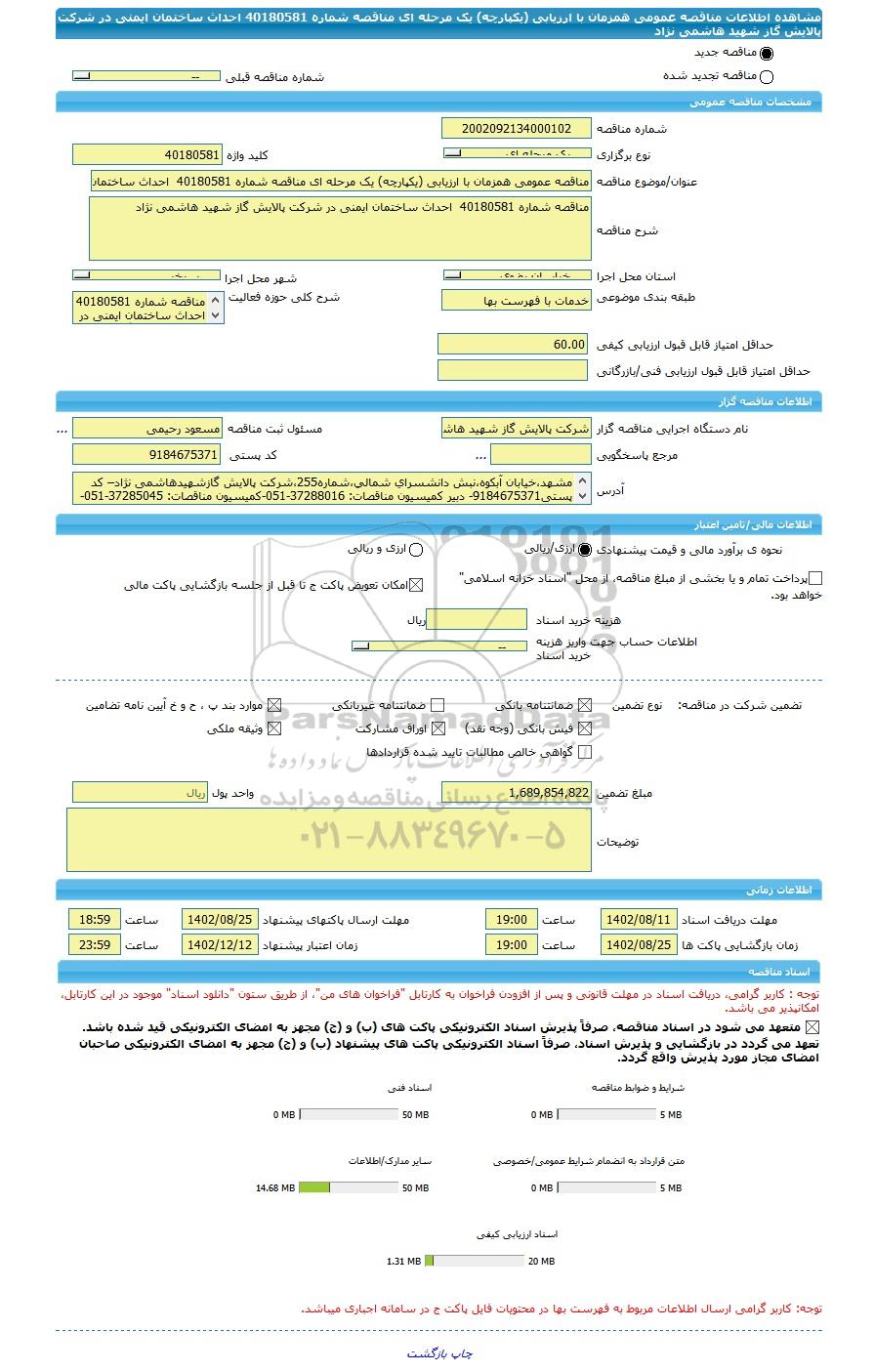 | مبلغ تضمین | 1,689,854,822 | واحد پول | ریال |