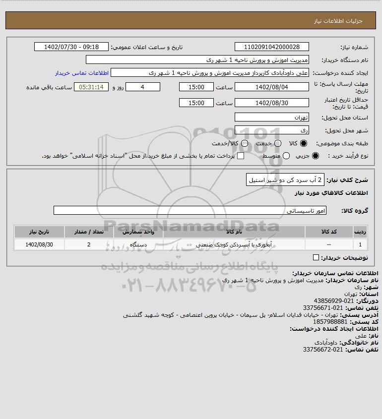 نام دستگاه خریدار:مدیریت اموزش و پرورش ناحیه 1 شهر ری