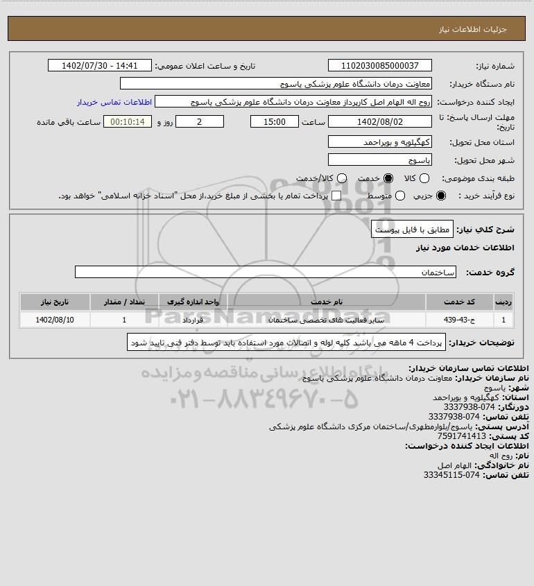 نام دستگاه خریدار:معاونت درمان دانشگاه علوم پزشکی یاسوج