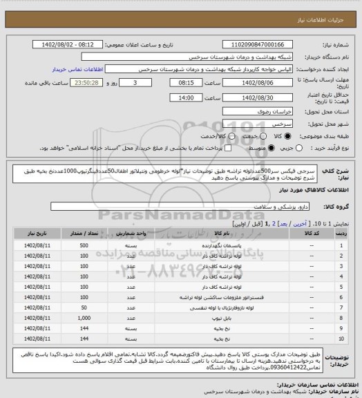 نام دستگاه خریدار:شبکه بهداشت و درمان شهرستان سرخس