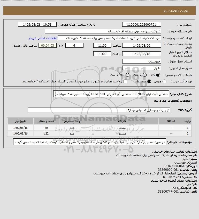 شرح کلی نیاز: صندلی ثابت نیلپر SC700G - صندلی گردان نیلپر OCM 900E (پرداخت غیر نقدی میباشد)