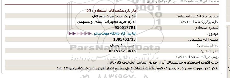 اداره برگزار کننده استعلام: اداره خرید تجهیزات ایمنی و عمومی