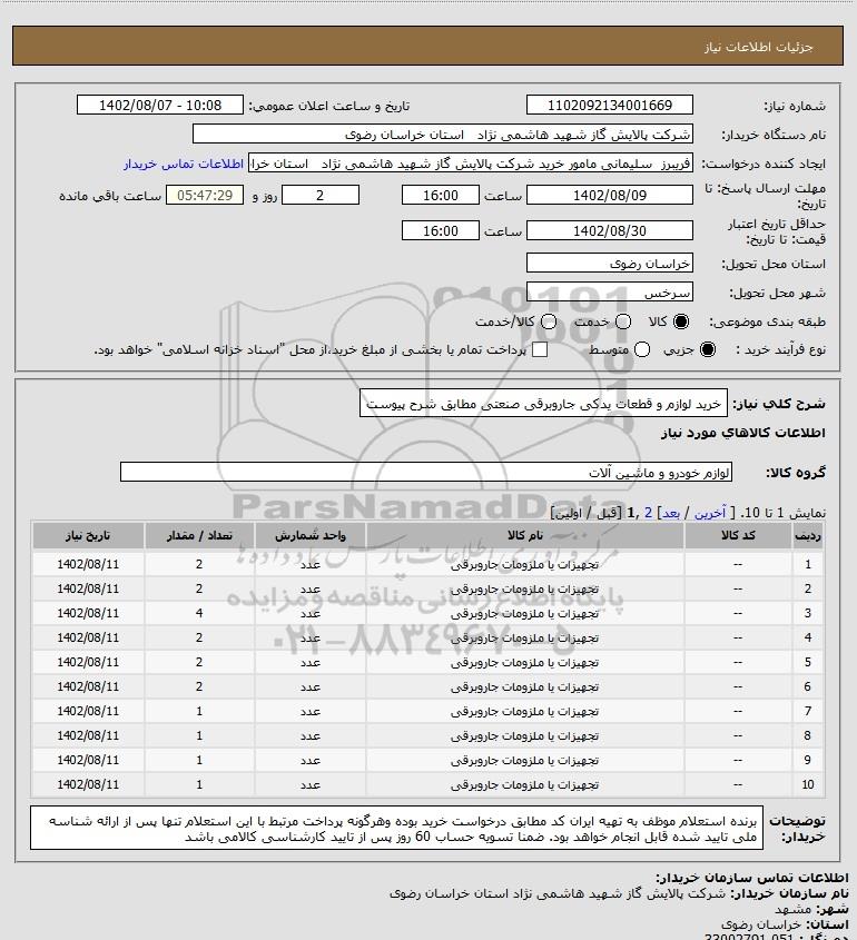 نام دستگاه خریدار:شرکت پالایش گاز شهید هاشمی نژاد استان خراسان رضوی