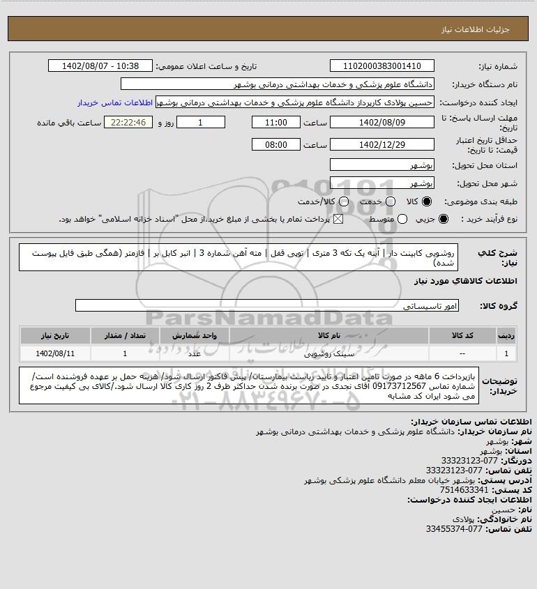 نام دستگاه خریدار:دانشگاه علوم پزشکی و خدمات بهداشتی درمانی بوشهر