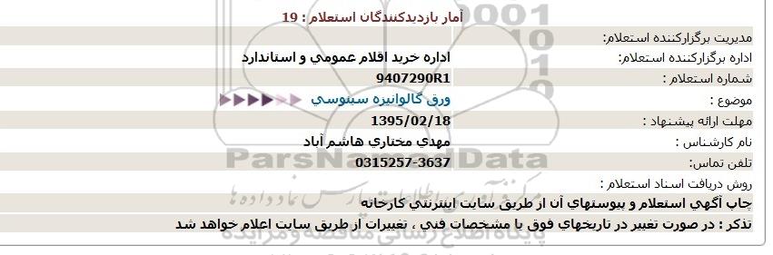 اداره برگزارکننده استعلام: اداره خرید اقلام عمومی و استاندارد