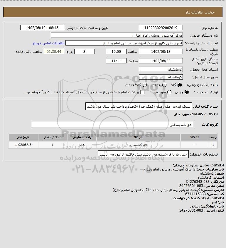 شرح کلی نیاز: شوک ابزوربر اصلی میله (کمک فنر) 24عدد پرداخت یک سال می باشد
