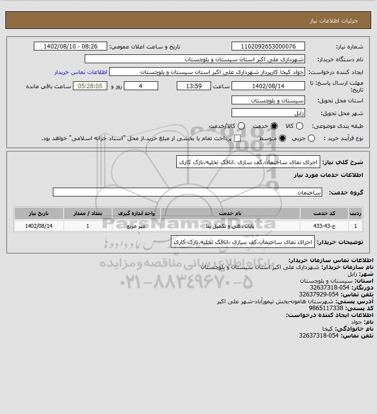 توضیحات خریدار:اجرای نمای ساختمان،کف سازی ،اتاقک تخلیه،نازک کاری