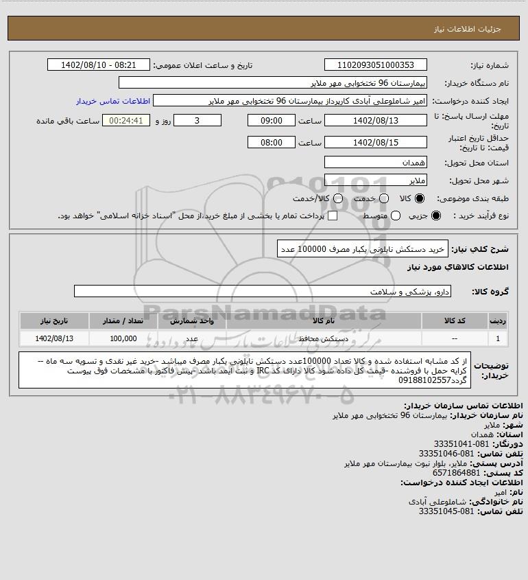 شرح کلی نیاز: خرید دستکش نایلونی یکبار مصرف 100000 عدد