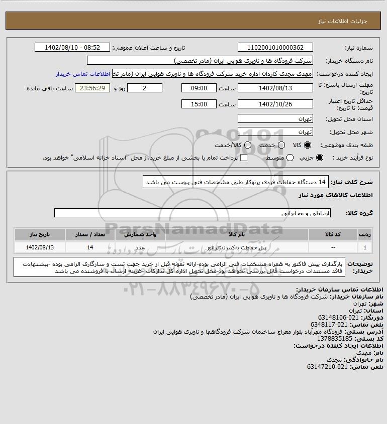 نام دستگاه خریدار:شرکت فرودگاه ها و ناوبری هوایی ایران (مادر تخصصی)