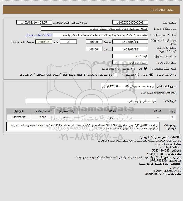 نام دستگاه خریدار:شبکه بهداشت درمان شهرستان اسلام ابادغرب