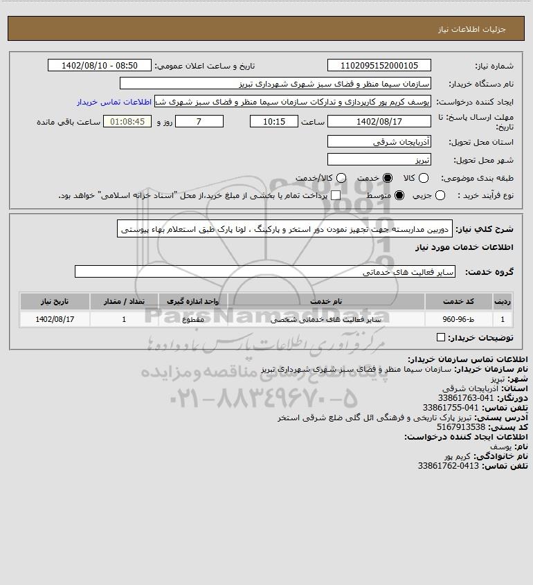نام دستگاه خریدار:سازمان سیما منظر و فضای سبز شهری شهرداری تبریز
