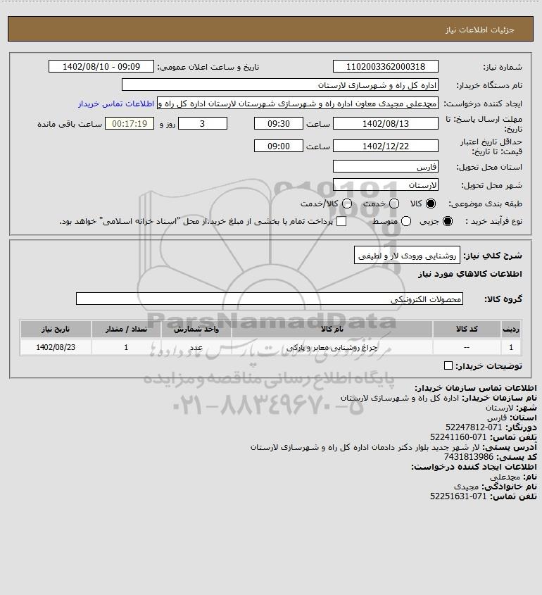 شرح کلی نیاز: روشنایی ورودی لار و لطیفی