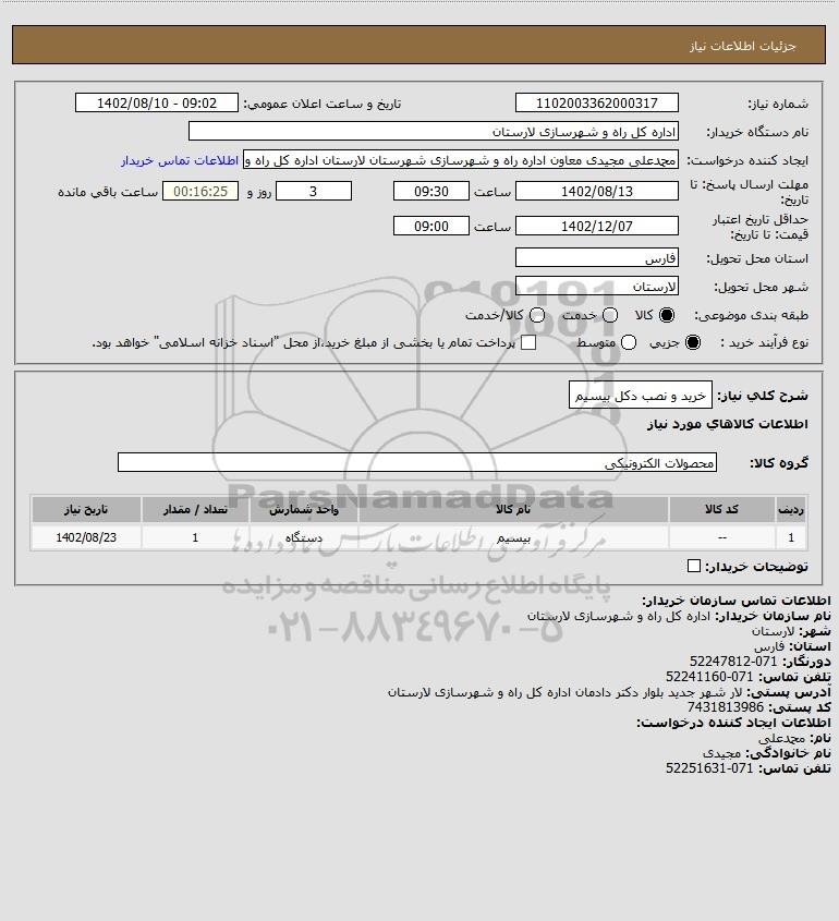نام دستگاه خریدار:اداره کل راه و شهرسازی لارستان