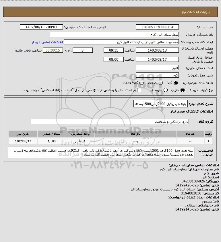 شرح کلی نیاز: پنبه هیدروفیل 100گرمی1500بسته