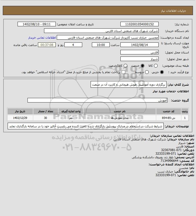 نام دستگاه خریدار:شرکت شهرک های صنعتی استان فارس