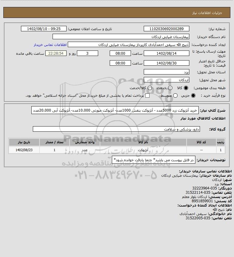 نام دستگاه خریدار:بیمارستان ضیایی اردکان