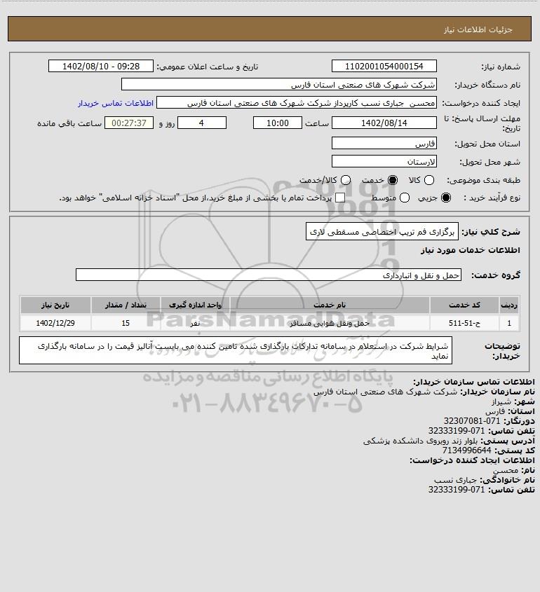 نام دستگاه خریدار:شرکت شهرک های صنعتی استان فارس