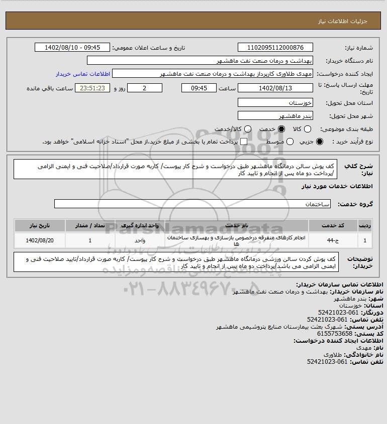 نام دستگاه خریدار:بهداشت و درمان صنعت نفت ماهشهر