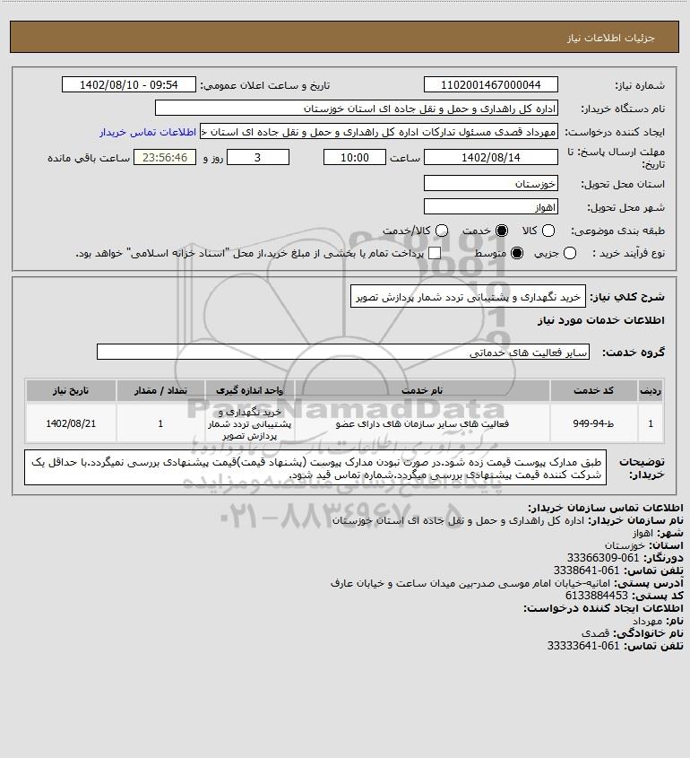 نام سازمان خریدار: اداره کل راهداری و حمل و نقل جاده ای استان خوزستان