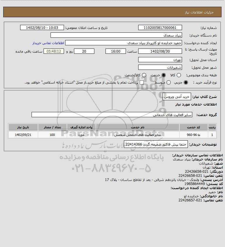 نام دستگاه خریدار:بنیاد سعدی