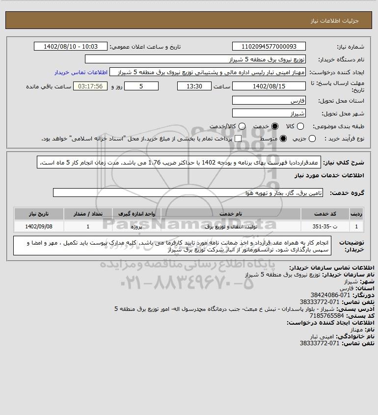 نام دستگاه خریدار:توزیع نیروی برق منطقه 5 شیراز