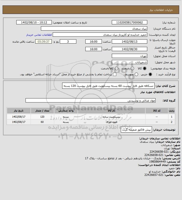 نام دستگاه خریدار:بنیاد سعدی