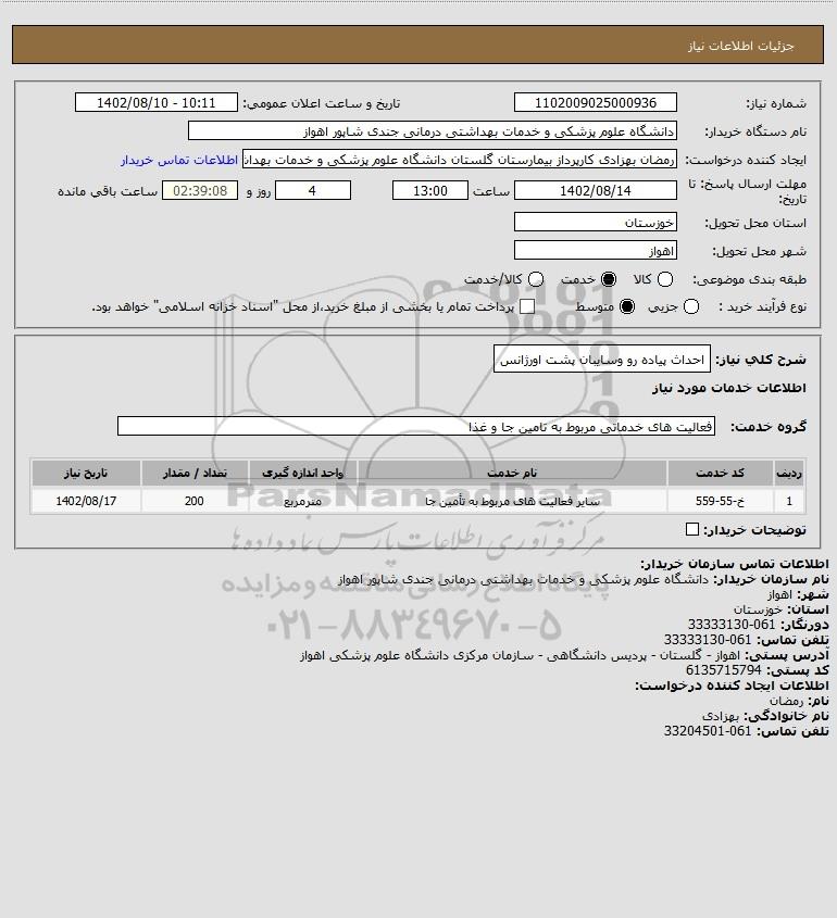 شرح کلی نیاز: احداث پیاده رو وسایبان پشت اورژانس