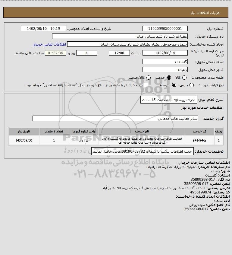 شرح کلی نیاز: اجرای زیرسازی با ضخامت 15سانت