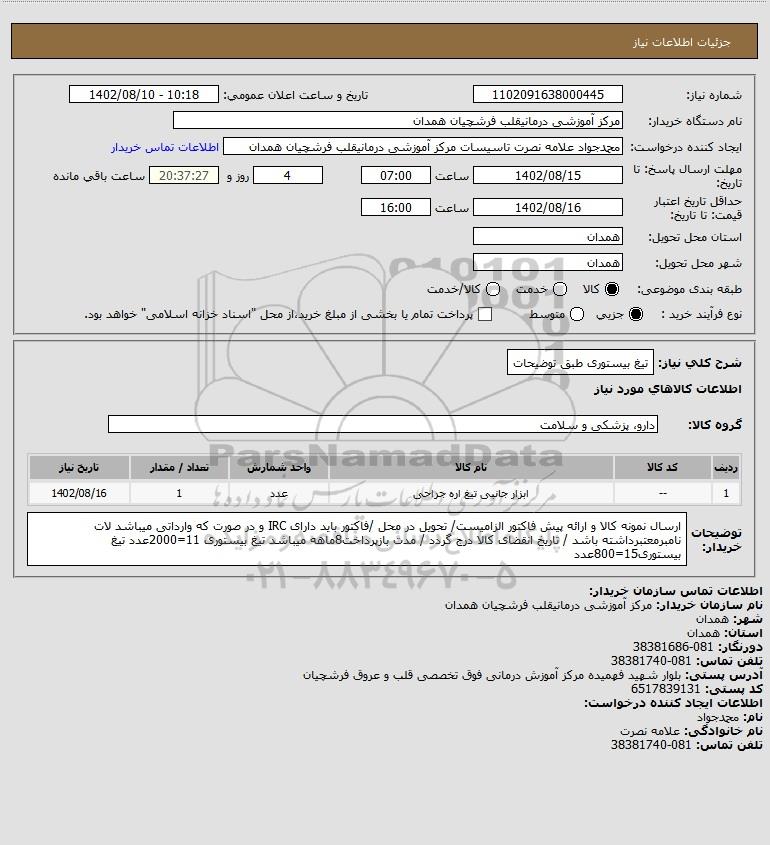 شرح کلی نیاز: تیغ بیستوری طبق توضیحات