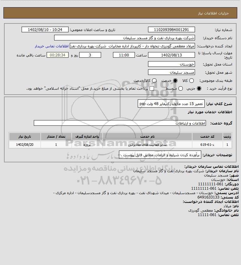 استعلام تعمیر 15 عدد ماژول رکتیفایر 48 ولت psp, استعلام تعمیر 15 عدد ماژول رکتیفایر 48 ولت psp